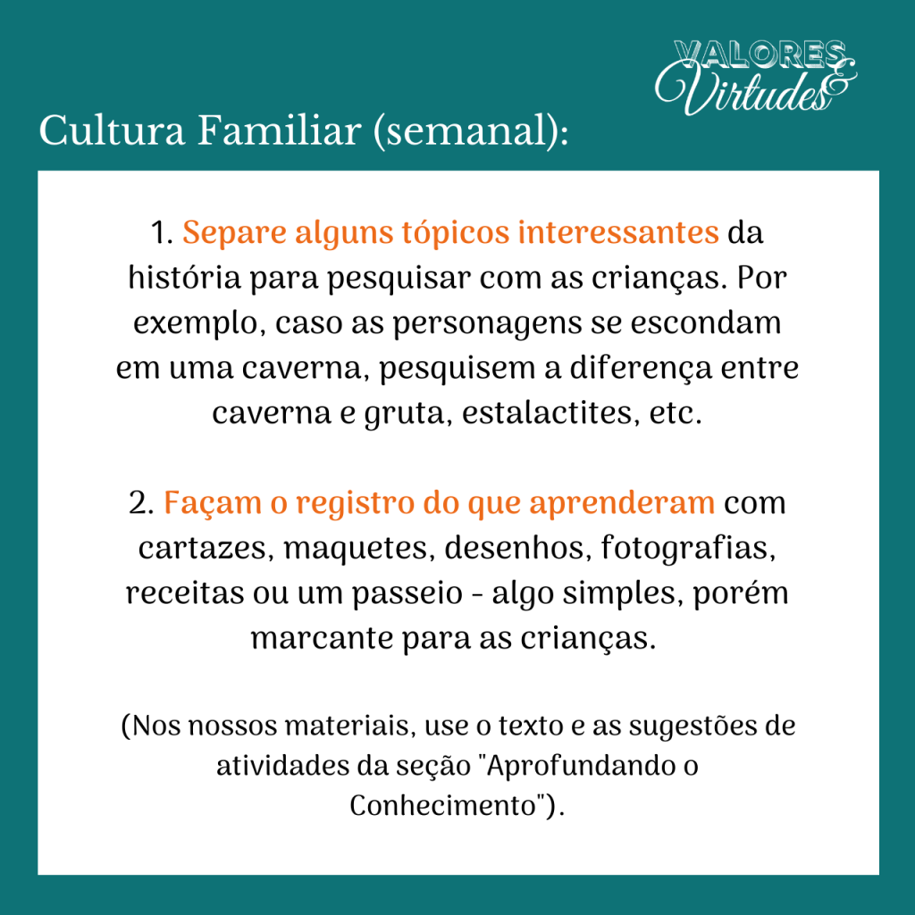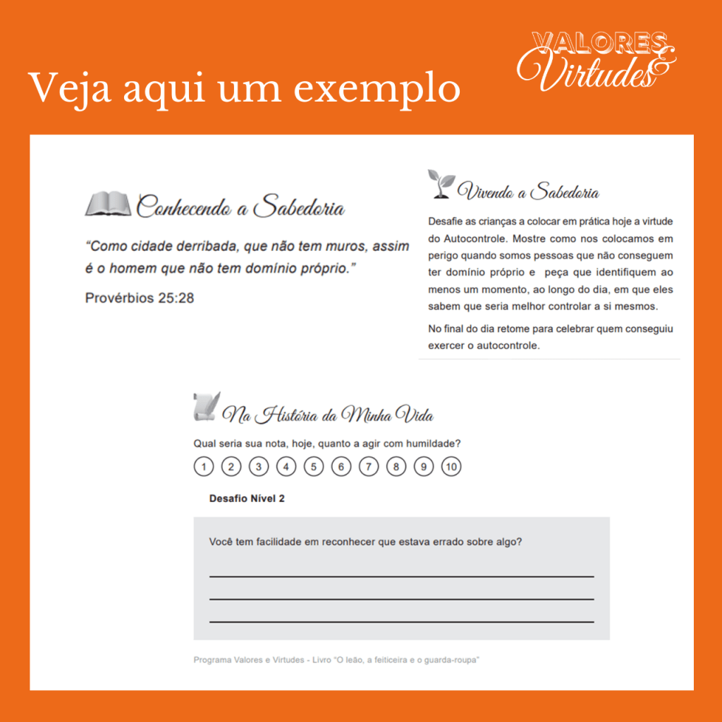 E se quiser tornar ainda mais leve, use nossos materiais do Programa Valores e Virtudes, preparados para que você passe menos tempo pesquisando e preparando, e mais tempo criando vínculos e desfrutando de tudo isso com sua família.