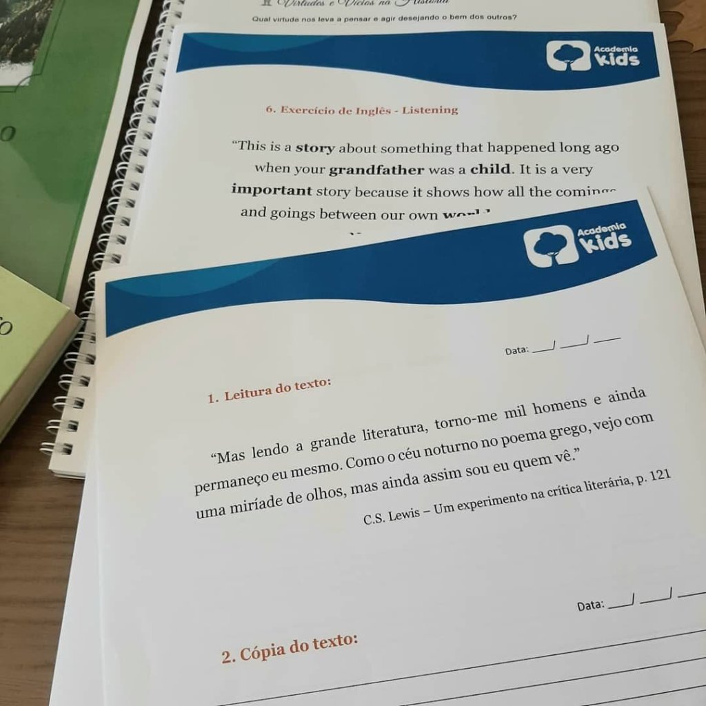 – Material do Aluno, com folhas para registro do que aprendeu sobre as virtudes, sabedoria bíblica e vocabulário (usem essa parte do registro, gente! A atividade oral é ótima, mas nada produz tanto aprendizado quando a escrita.)