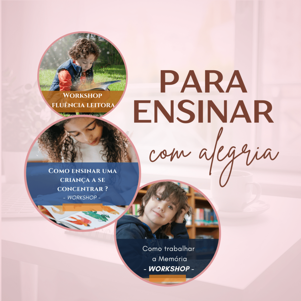 Tudo organizado já em estratégias práticas que eu explico timtim por timtim em cada workshop de forma muito prática e direta – o que é ótimo para quem quer ganhar confiança no trabalho educacional, mas tem pouco tempo para dedicar aos estudos – e criei um Kit chamado “Para ensinar com alegria”.