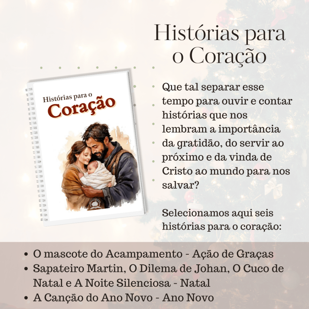 – Advento/Natal – “O sapateiro Martin, de Tolstoi, “O Dilema de Johan”, de W.C. Noack, “O Cuco de Natal”, de Frances Browne e “A Noite Silenciosa”, de Katarine Jordão. 🙂