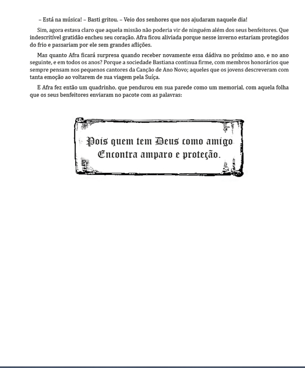– Primeira semana do ano – “A Canção de Ano Novo”, de Johanna Spyri (autora do livro Heidi, a menina dos Alpes).