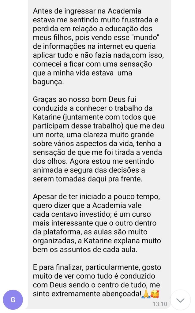 Mas aproveite, porque é só agora! O programa será lançado na última semana de janeiro, mas você já tem acesso a todas as mais de 160 horas de conteúdo formativo e prático da Academia (sabendo que, muitas vezes, uma só aula já é a virada de chave que você precisa para mudar as coisas na educação das suas crianças).