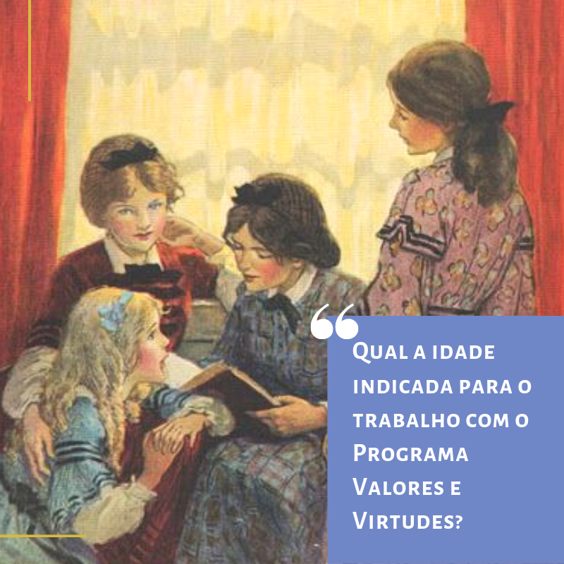 ENSINO DAS VIRTUDES: Costumo indicar o ensino das virtudes mais concretas como a gratidão e a obediência para as crianças a partir dos 2 anos e meio ou 3, embora, como explico nas videoaulas do Estudo das Virtudes (material de introdução do Programa), desde que a criança nasce, a forma como lidamos com ela influencia a maneira como ela compreenderá e cultivará as virtudes. Na verdade, gente, estamos o tempo todo ensinando a criança a ser virtuosa ou a desenvolver vícios, mesmo quando não nos damos conta disso. Durante as conversas que indicamos após a leitura, você vai ensinando a partir da realidade de cada um.